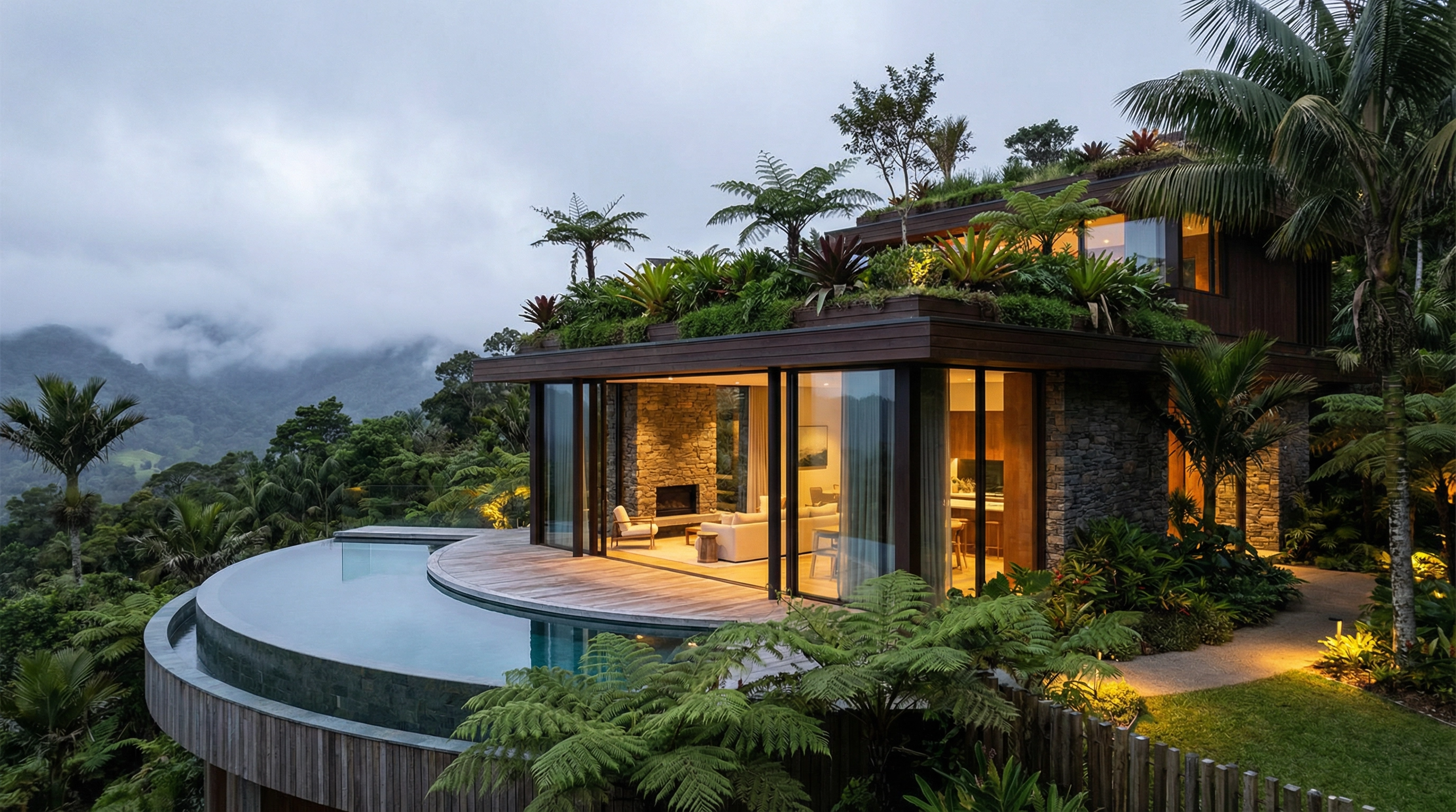 The terrain defines the plan. Existing ecosystems are preserved, not cleared. Trees are not obstacles; they are the architecture. Every decision begins with one question: what does the land want?